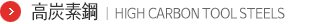 高炭素鋼は0.6%~1.5%の炭素を含む高炭素鋼と合金元素を添加していない工具鋼であり、鉋、のこぎり、剃刀、やすり、刻印など一般工具用として広範位に使用される。